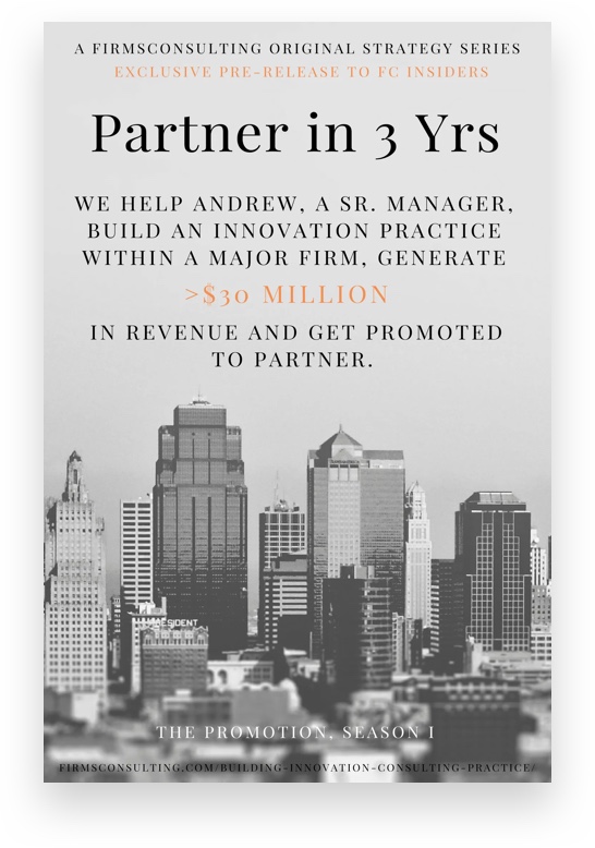 We help Andrew, a senior manager at a major international professional services firm, become an equity partner in 3 years by pursuing a highly unconventional path: re-building the firm’s failed innovation practice.