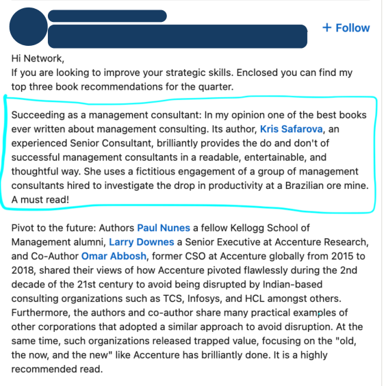 This is most likely a one-time opportunity. We are excited to make it possible for you. You will forever be a co-author alongside one of McKinsey’s and BCG’s most well-known partners, along with other outstanding leaders. It is a time-limited opportunity that may not be available again.
