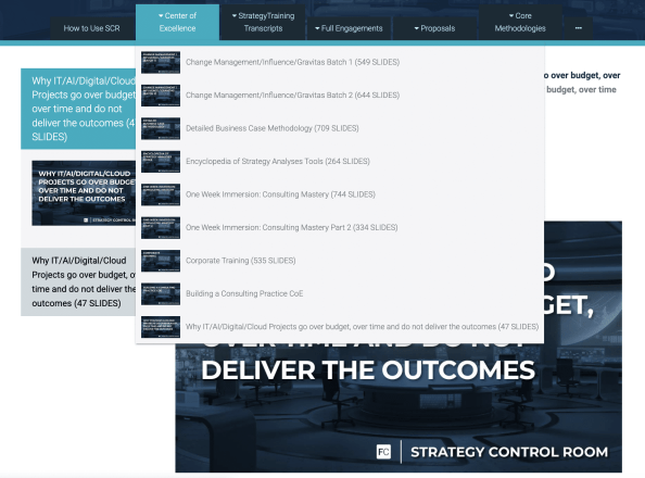 Gain an unrivaled advantage with Strategy Control Room Advanced. Access the same internal assets we’ve used in consulting studies and executive engagements. Materials traditional firms keep locked away. Inside the SCRA, you’ll find proprietary strategy guides, million-dollar proposals, and real-world tools that have generated over $500 million in client value. This is our private knowledge system, built for leaders who want to operate at a higher level. [Access the SCRA here.]